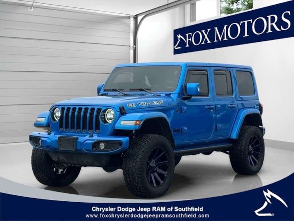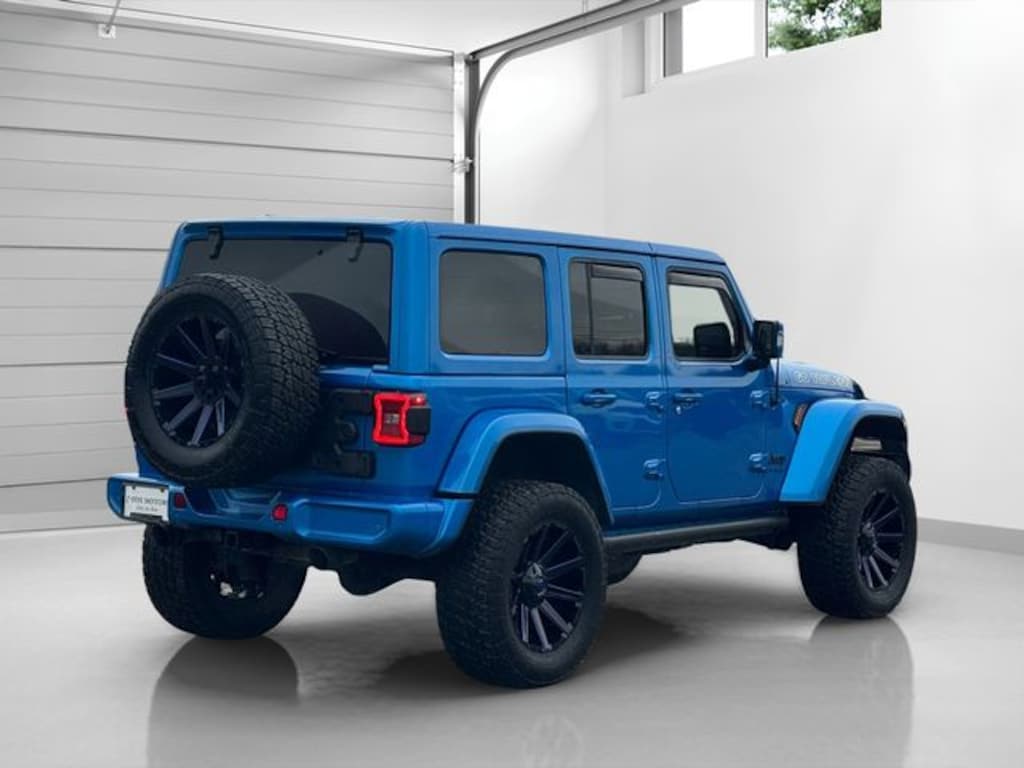 Hydro Blue Pearl Coat 2022 Jeep Wrangler Unlimited Sahara High Altitude 8-Speed Automatic 2.0L I4 DOHC 2.0L I4 DOHC, 8-Speed Automatic, 4WD, Hydro Blue Pearl Coat, Black Leather, 110 MPH Vehicle Max Speed Calibration, 3.73 Rear Axle Ratio, ABS brakes, Alloy wheels, Anti-Lock 4-Wheel FNC Disc Brakes, Apple CarPlay/Android Auto, Blind Spot & Cross Path Detection, Body Color 3-Piece Hard Top, Body Color Door Handles, Body Color Front Bumper, Body Color Fuel Filler Door, Body Color Grille w/Gloss Black Rings, Body Color Rear Bumper w/Step Pads, Bridgestone Brand Tires, Caramel Interior Accents, Compass, Dana M210 Wide HD Tube Front Axle, Dana M220 Wide Rear Axle, Daytime Running Lamps LED Accents, Electronic Stability Control, Exterior Mirrors w/Supplemental Signals, Freedom Panel Storage Bag, Front dual zone A/C, Front LED Fog Lamps, Full Body Color Fender Flares, Gray/Black Trail Rated Badge, Heated door mirrors, High Altitude Package, Illuminated entry, Leather Trimmed Bucket Seats, Leather Wrapped Park Brake Handle, Leather Wrapped Shift Knob, LED Lighting Group, LED Premium Reflector Headlamps, LED Taillamps, Low tire pressure warning, Navigation System, No Soft Top, ParkSense Rear Park Assist System, ParkView Rear Back-Up Camera, Premium Dark Exterior Accents, Quick Order Package 22N High Altitude, Radio: Uconnect 4C Nav w/8.4" Display, Rear Window Defroster, Rear Window Wiper/Washer, Remote keyless entry, Safety Group, Sport Suspension, Steering wheel mounted audio controls, Stop-Start Dual Battery System, Summit Badging, Traction control, Wheels: 20" x 8" Fully Painted Aluminum, Wrapped I/P Bezel w/Caramel Stitch.