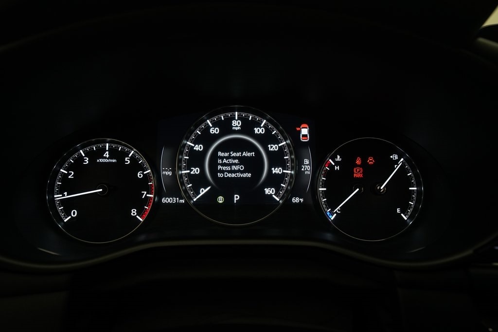 4-Wheel Disc Brakes, 8 Speakers, ABS Brakes, Air Conditioning, Alloy wheels, AM/FM Radio, Auto High-beam Headlights, Automatic temperature control, Brake Assist, Bumpers: body-color, Compass, Delay-off headlights, Driver door bin, Driver vanity mirror, Dual front impact airbags, Dual front side impact airbags, Dual-Climate Control, Electronic Stability Control, Emergency communication system: Mazda Connected Services (3-year complimentary trial included), Front anti-roll bar, Front Bucket Seats, Front Center Armrest, Front reading lights, Front wheel independent suspension, Fully Automatic Headlights, Heated Front Seats, Heated Front Sport Bucket Seats, Heated Sideview Mirrors, Illuminated Entry, Knee airbag, Leather Seat Trim, Leather Shift Knob, Leather Steering Wheel, Low Tire Pressure Warning, MAZDA CONNECT Infotainment System, Mazda Navigation System, Memory seat, Occupant sensing airbag, Outside Temperature Display, Overhead airbag, Overhead Console, Panic alarm, Passenger door bin, Passenger vanity mirror, Power Adjusting Driver Seat, Power Moonroof, Power Sideview Mirrors, Power Steering, Power Windows, Radio data system, Radio: AM/FM/HD Audio System, Rain Sensing Wipers, Rear seat center armrest, Rear side impact airbag, Rear-View Camera, Rear/Front Window Defroster, Remote keyless entry, Speed Control, Speed-sensing steering, Split Folding Rear Seat, Steering Wheel Mounted Audio Controls, Tachometer, Telescoping steering wheel, Tilt steering wheel, Traction Control, Trip computer, Turn signal indicator mirrors, Variably intermittent wipers, Wheels: 18" x 7J Aluminum Alloy.