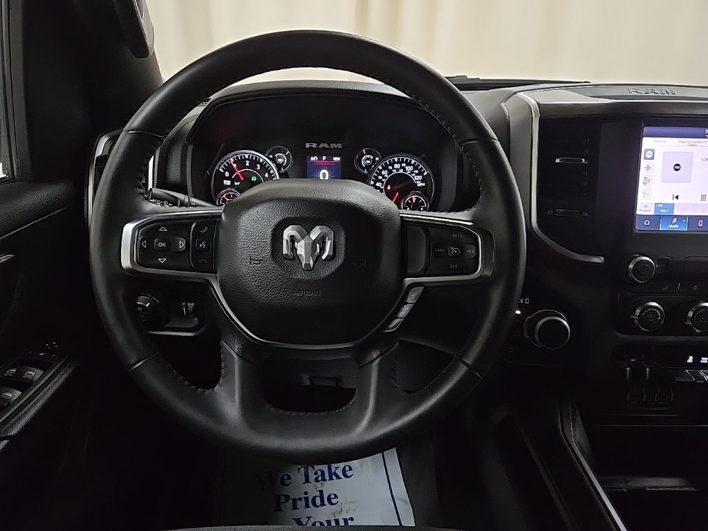 2nd Row In Floor Storage Bins, 3 Rear Seat Head Restraints, 4 Way Front Headrests, 4-Wheel Disc Brakes, 4G LTE Wi-Fi Hot Spot, ABS brakes, Apple CarPlay, Auto-Dimming Exterior Driver Mirror, Auto-Dimming Rear-View Mirror, Big Horn Badge, Big Horn Level 1 Equipment Group, Black Interior Accents, Black Premium Power Mirrors, Bluetooth Handsfree Phone & Audio, Body Color Door Handles, Body Color Exterior Mirrors, Body Color Front Bumper, Body Color Premium Power Mirrors, Body Color Rear Bumper w/Step Pads, Brake assist, Bucket Seats, Class IV Receiver Hitch, Connectivity - US/Canada, Convex Wide-Angle Exterior Mirror Insert, Deluxe Cloth Bucket Seats, Dual front impact airbags, Dual front side impact airbags, Electric Shift-On-Demand Transfer Case, Electronic Stability Control, Emergency communication system: RAM Connect, Exterior Mirrors Courtesy Lamps, Exterior Mirrors w/Heating Element, Exterior Mirrors w/Supplemental Signals, For Details, Visit DriveUconnect.com, For More Info, Call 800-643-2112, Front anti-roll bar, Front Fog Lamps, Front Seat Back Map Pockets, Front wheel independent suspension, Full Length Floor Console, Global Telematics Box Module (TBM), Glove Box Lamp, Google Android Auto, Grille Surround 1 Body Color Texture 2 Black, Heated Front Seats, Heated Steering Wheel, Low tire pressure warning, Manual Adjust 4-Way Front Passenger Seat, Occupant sensing airbag, Overhead airbag, ParkView Rear Back-Up Camera, Passenger Sun Visor w/Illuminated Mirror, Power 2-Way Driver Lumbar Adjust, Power 8-Way Driver Seat, Power steering, Power windows, Power-Folding Mirrors, Quick Order Package 27Z Big Horn, Radio: Uconnect 5 W w/8.4" Display, RAM Grille Badge - Chrome, Rear 60/40 Folding Seat, Rear Center Armrest, Rear Dome w/On/Off Switch Lamp, Rear Power Sliding Window, Rear seat center armrest, Rear Window Defroster, Remote keyless entry, SiriusXM Radio Service, SiriusXM Satellite Radio, Sport Appearance Package, Steering wheel mounted audio controls, Tachometer, Telescoping steering wheel, Tilt steering wheel, Trip computer, USB Host Flip, Voltmeter, 3.21 Rear Axle Ratio, 48V Belt Starter Generator, 6 Speakers, Air Conditioning, Alloy wheels, AM/FM radio, Bumpers: chrome, Cloth Bench Seat, Compass, Delay-off headlights, Driver door bin, Front Center Armrest w/Storage, Front License Plate Bracket, Front reading lights, Fully automatic headlights, Heated door mirrors, Illuminated entry, Integrated Voice Command w/Bluetooth, Leather steering wheel, MOPAR Front & Rear Rubber Floor Mats, Outside temperature display, Overhead console, Panic alarm, Passenger door bin, Passenger vanity mirror, Power door mirrors, Radio data system, Radio: Uconnect 3 w/5" Display, Rear anti-roll bar, Rear step bumper, Rear Wheelhouse Liners, Remote Start System, Speed control, Split folding rear seat, Traction control, Trailer Brake Control, Variably intermittent wipers, Wheels: 18" x 8" Cast-Aluminum Painted, Wheels: 20" x 9" Aluminum Chrome Clad (WRK), 2nd Row In Floor Storage Bins, 3 Rear Seat Head Restraints, 4 Way Front Headrests, 4-Wheel Disc Brakes, 4G LTE Wi-Fi Hot Spot, ABS brakes, Apple CarPlay, Auto-Dimming Exterior Driver Mirror, Auto-Dimming Rear-View Mirror, Big Horn Badge, Big Horn Level 1 Equipment Group, Black Interior Accents, Black Premium Power Mirrors, Bluetooth Handsfree Phone & Audio, Body Color Door Handles, Body Color Exterior Mirrors, Body Color Front Bumper, Body Color Premium Power Mirrors, Body Color Rear Bumper w/Step Pads, Brake assist, Bucket Seats, Class IV Receiver Hitch, Connectivity - US/Canada, Convex Wide-Angle Exterior Mirror Insert, Deluxe Cloth Bucket Seats, Dual front impact airbags, Dual front side impact airbags, Electric Shift-On-Demand Transfer Case, Electronic Stability Control, Emergency communication system: RAM Connect, Exterior Mirrors Courtesy La