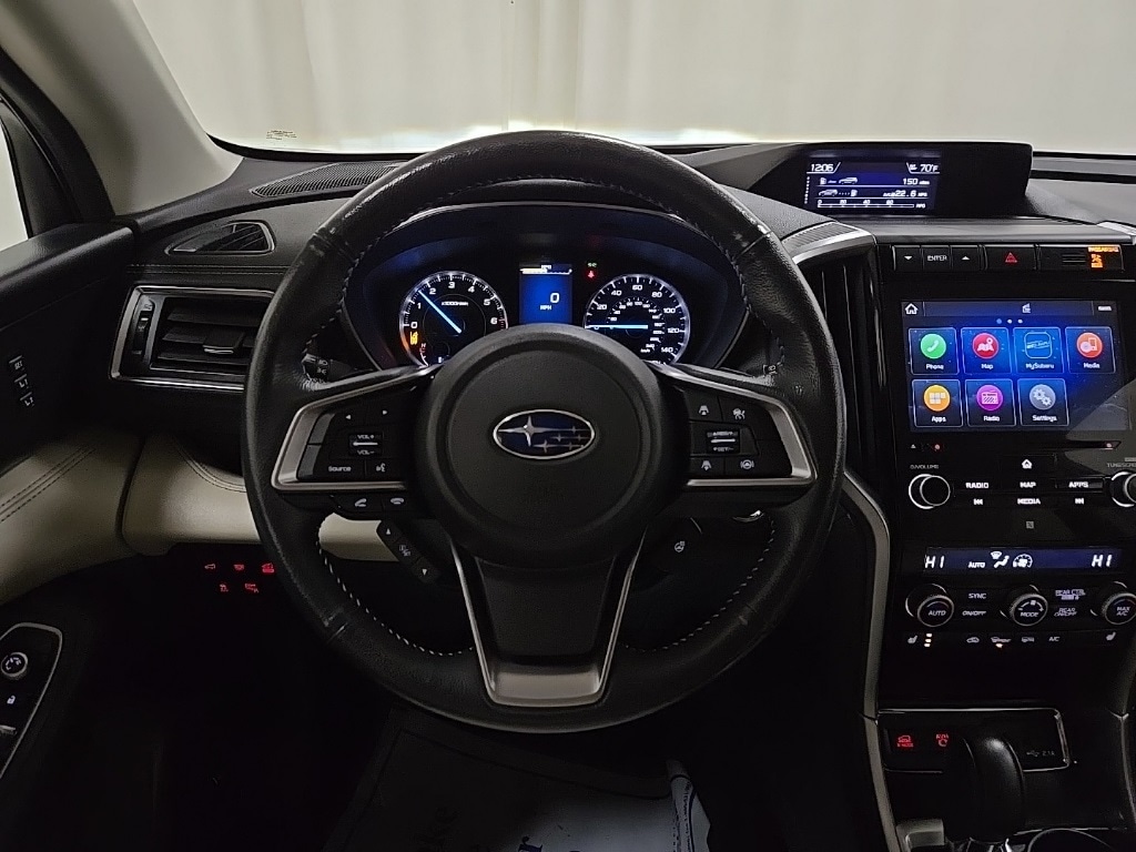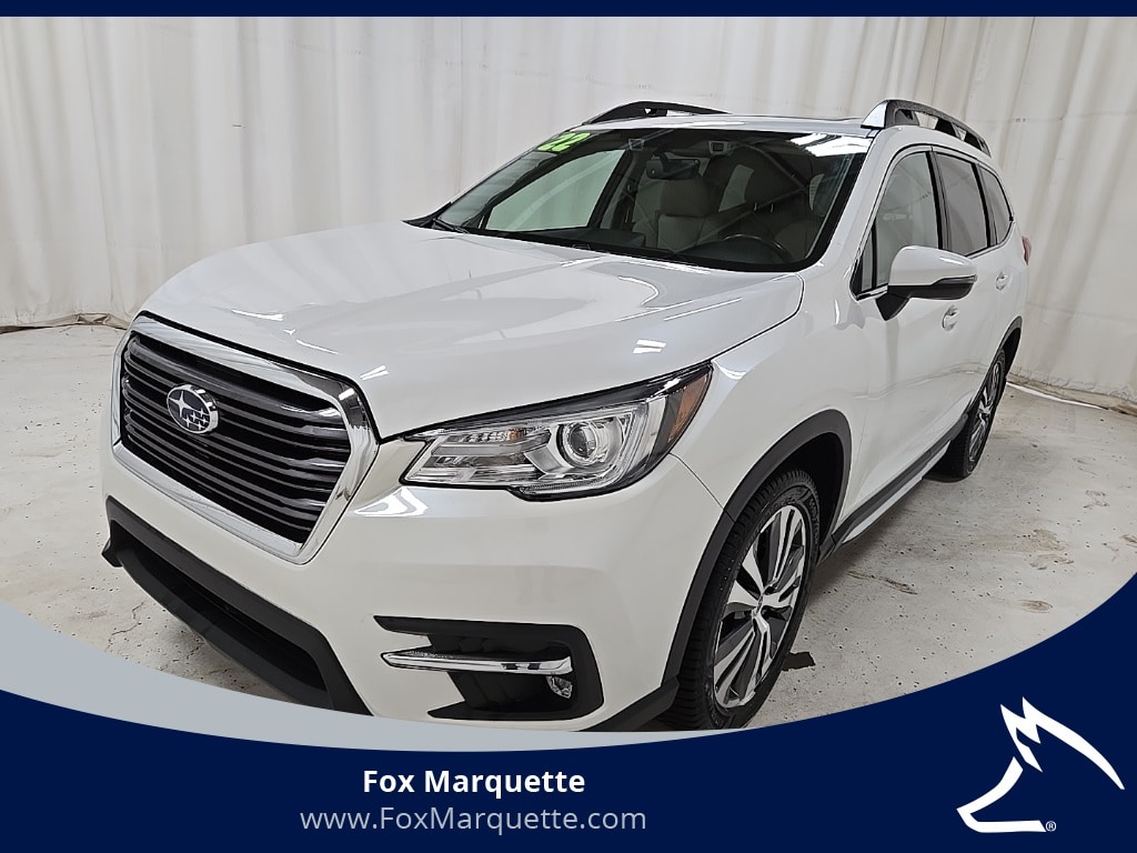 Crystal White Pearl 2022 Subaru Ascent Limited AWD Lineartronic CVT 2.4L 4-Cylinder DOHC 16V Subaru Certified Pre-Owned Certified, 3rd row seats: bench, 3rd Row Sunshade, 4-Wheel Disc Brakes, 6 Speakers, ABS brakes, Aero Crossbar Set, Air Conditioning, All-Weather Floor Liners, Alloy wheels, AM/FM radio: SiriusXM, Auto High-beam Headlights, Auto-Dimming Exterior Mirror w/Approach Light, Auto-dimming Rear-View mirror, Automatic temperature control, Axle Ratio: 4.44, Brake assist, Bumpers: body-color, Cargo Area Cover, Cargo Tray, CD player, Compass, Cup Holder Insert, Delay-off headlights, Driver door bin, Driver vanity mirror, Dual front impact airbags, Dual front side impact airbags, Dual Glass Panoramic Power Moonroof, Electronic Stability Control, Emergency communication system: STARLINK Safety and Security (Subscription Required), Exterior Parking Camera Rear, Four wheel independent suspension, Front anti-roll bar, Front Bucket Seats, Front Center Armrest, Front dual zone A/C, Front fog lights, Front reading lights, Fully automatic headlights, Garage door transmitter: HomeLink, Heated door mirrors, Heated Front Bucket Seats, Heated front seats, Heated rear seats, Heated steering wheel, Illuminated entry, Knee airbag, Low tire pressure warning, Map & Reading Lights LED Upgrade - 6 Bulb Kit, Memory seat, Occupant sensing airbag, Outside temperature display, Overhead airbag, Overhead console, Panic alarm, Passenger door bin, Passenger vanity mirror, Perforated Leather-Trimmed Upholstery, Popular Package #2A, Power door mirrors, Power driver seat, Power Liftgate, Power passenger seat, Power steering, Power windows, Radio data system, Radio: Subaru STARLINK 8.0" Multimedia Nav System, Radio: Subaru STARLINK 8.0" Multimedia Plus System, Rear air conditioning, Rear anti-roll bar, Rear Bumper Cover, Rear reading lights, Rear window defroster, Rear window wiper, Reclining 3rd row seat, Remote keyless entry, Security system, Speed control, Splash Guards, Split folding rear seat, Spoiler, STARLINK/Apple CarPlay/Android Auto, Steering wheel mounted audio controls, Tachometer, Technology Package, Telescoping steering wheel, Tilt steering wheel, Traction control, Trip computer, Turn signal indicator mirrors, Variably intermittent wipers, Wheels: 20" x 7.5 J Dk Gray Alloy w/Machine Finish.