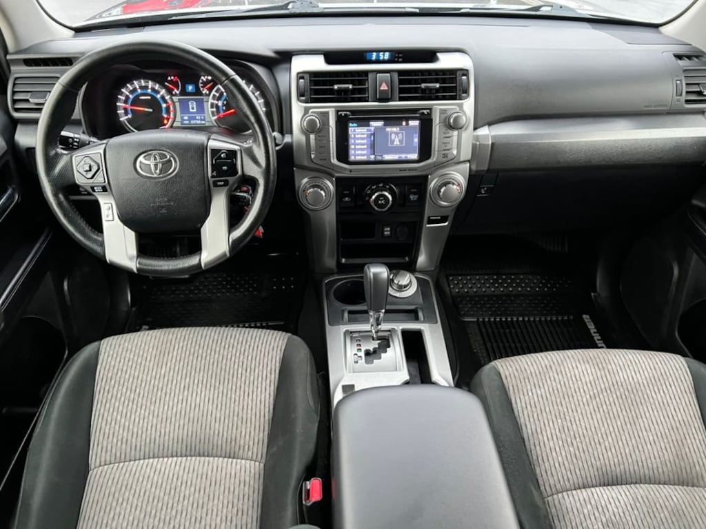 4WD, Cloth, 17" x 7.0" 6-Spoke Alloy Wheels, 3.727 Axle Ratio, 4-Wheel Disc Brakes, 8 Speakers, ABS brakes, Air Conditioning, Alloy wheels, AM/FM radio: SiriusXM, Anti-whiplash front head restraints, Brake assist, Bumpers: body-color, CD player, Driver door bin, Driver vanity mirror, Dual front impact airbags, Dual front side impact airbags, Electronic Stability Control, Emergency communication system: Safety Connect, Exterior Parking Camera Rear, Front anti-roll bar, Front Bucket Seats, Front Center Armrest, Front fog lights, Front reading lights, Front wheel independent suspension, Heated door mirrors, Illuminated entry, Knee airbag, Leather Shift Knob, Leather steering wheel, Low Fabric Seat Trim, Low tire pressure warning, Occupant sensing airbag, Outside temperature display, Overhead airbag, Overhead console, Panic alarm, Passenger door bin, Passenger vanity mirror, Power door mirrors, Power driver seat, Power steering, Power windows, Radio: Entune Audio Plus, Rear anti-roll bar, Rear seat center armrest, Rear window defroster, Rear window wiper, Remote keyless entry, Roof rack: rails only, Security system, Speed control, Speed-sensing steering, Split folding rear seat, Spoiler, Steering wheel mounted audio controls, Tachometer, Telescoping steering wheel, Tilt steering wheel, Traction control, Trip computer, Variably intermittent wipers, 4WD, Cloth.
