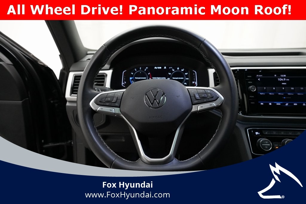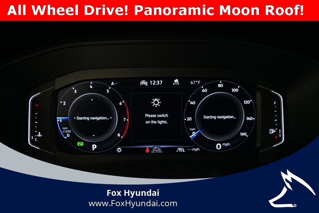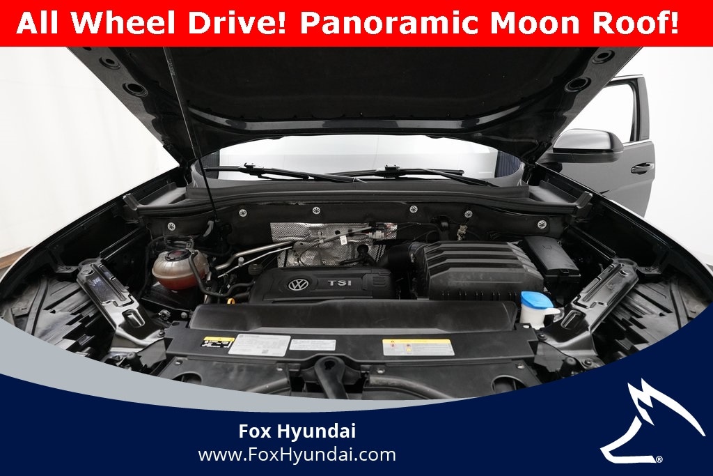 3.60 Axle Ratio, 4-Wheel Disc Brakes, 6 Speakers, ABS Brakes, Air Conditioning, Alloy wheels, AM/FM radio: SiriusXM with 360L, Auto High-beam Headlights, Auto-dimming Rear-View mirror, Automatic temperature control, Brake Assist, Bumpers: body-color, Compass, Delay-off headlights, Driver door bin, Driver vanity mirror, Dual front impact airbags, Dual front side impact airbags, Dual-Climate Control, Electronic Stability Control, Emergency communication system: VW Car-Net Safe & Secure 5-year, Four wheel independent suspension, Front anti-roll bar, Front Bucket Seats, Front Center Armrest, Front Fog Lights, Front reading lights, Fully Automatic Headlights, Heated Comfort Front Bucket Seats, Heated Front Seats, Heated Sideview Mirrors, Heated Steering Wheel, Illuminated Entry, Leather Shift Knob, Low Tire Pressure Warning, Memory seat, Navigation System, Occupant sensing airbag, Outside Temperature Display, Overhead airbag, Overhead console, Panic Alarm, Passenger door bin, Passenger vanity mirror, Perforated V-Tex Leatherette Seating Surfaces, Power Adjusting Driver Seat, Power door mirrors, Power Liftgate, Power moonroof: Panoramic, Power passenger seat, Power steering, Power Windows, Radio data system, Radio: MIB3 Discover Media w/8" Touchscreen Navigation, Rain Sensing Wipers, Rear anti-roll bar, Rear reading lights, Rear seat center armrest, Rear Spoiler, Rear Window Wiper, Rear-View Camera, Rear/Front Window Defroster, Remote Keyless Entry, Security System, Speed control, Speed-sensing steering, Split Folding Rear Seat, Standard Suspension, Steering Wheel Mounted Controls, Tachometer, Telescoping steering wheel, Tilt steering wheel, Traction Control, Trip computer, Turn Signal Indicator Mirrors, Variably intermittent wipers, Wheels: 20" x 8J 5-Spoke 2-Tone Machined Alloy.