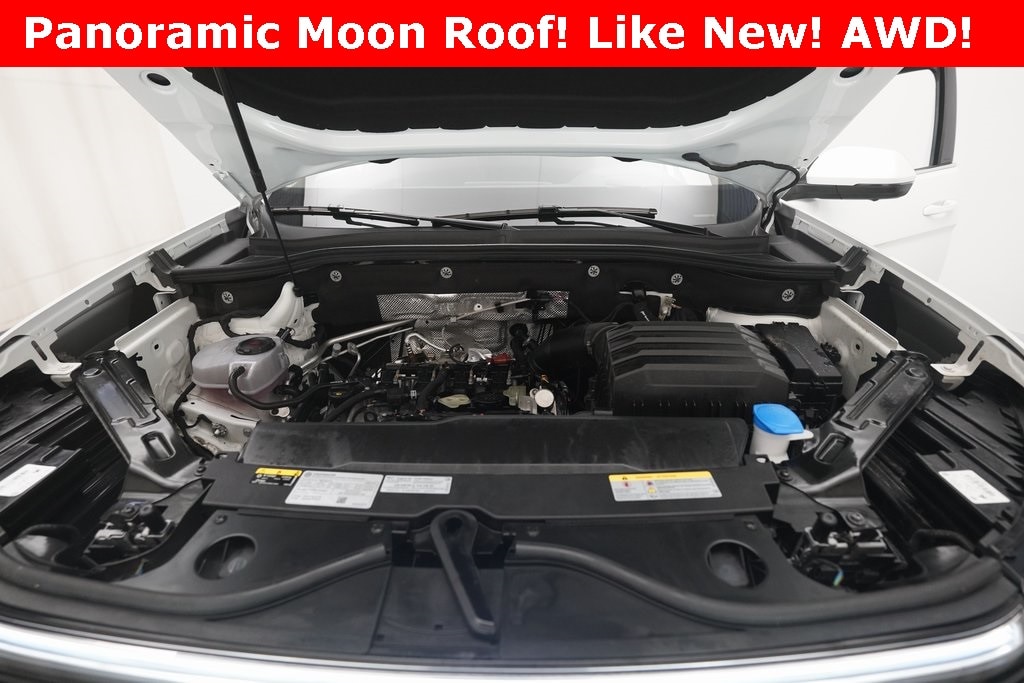 10 Speakers, 3rd Row Seats, 4-Wheel Disc Brakes, ABS Brakes, Air Conditioning, Alloy wheels, AM/FM radio: SiriusXM with 360L, Auto High-beam Headlights, Auto-dimming Rear-View mirror, Automatic temperature control, Brake Assist, Bumpers: body-color, Compass, Delay-off headlights, Driver door bin, Driver vanity mirror, Dual front impact airbags, Dual front side impact airbags, Dual-Climate Control, Electronic Stability Control, Emergency communication system: VW Car-Net Safe & Secure 5-year, Four wheel independent suspension, Four-wheel Independent Suspension, Front anti-roll bar, Front Bucket Seats, Front Center Armrest, Front Fog Lights, Front reading lights, Fully Automatic Headlights, harman/kardon® Speakers, Heads-Up Display, Heated & Actively Ventilated Front Bucket Seats, Heated Front Seats, Heated Rear Seats, Heated Sideview Mirrors, Heated Steering Wheel, Illuminated Entry, Leather steering wheel, Low Tire Pressure Warning, Memory seat, Navigation System, Occupant sensing airbag, Outside Temperature Display, Overhead airbag, Overhead console, Panic Alarm, Passenger door bin, Passenger vanity mirror, Perforated Vienna Leather Seating Surfaces, Power Adjusting Driver Seat, Power door mirrors, Power Liftgate, Power moonroof: Panoramic, Power passenger seat, Power steering, Power Windows, Radio data system, Radio: MIB3 Discover Media w/Navigation, Rain Sensing Wipers, Rear air conditioning, Rear anti-roll bar, Rear audio controls, Rear reading lights, Rear seat center armrest, Rear Spoiler, Rear Window Wiper, Rear-View Camera, Rear/Front Window Defroster, Remote Keyless Entry, Security System, Speed control, Speed-sensing steering, Split Folding Rear Seat, Sport steering wheel, Steering Wheel Mounted Controls, Tachometer, Telescoping steering wheel, Tilt steering wheel, Traction Control, Trip computer, Turn Signal Indicator Mirrors, Variably intermittent wipers, Ventilated Front Seats, Wheels: 21" 2-Tone Machined Alloy.